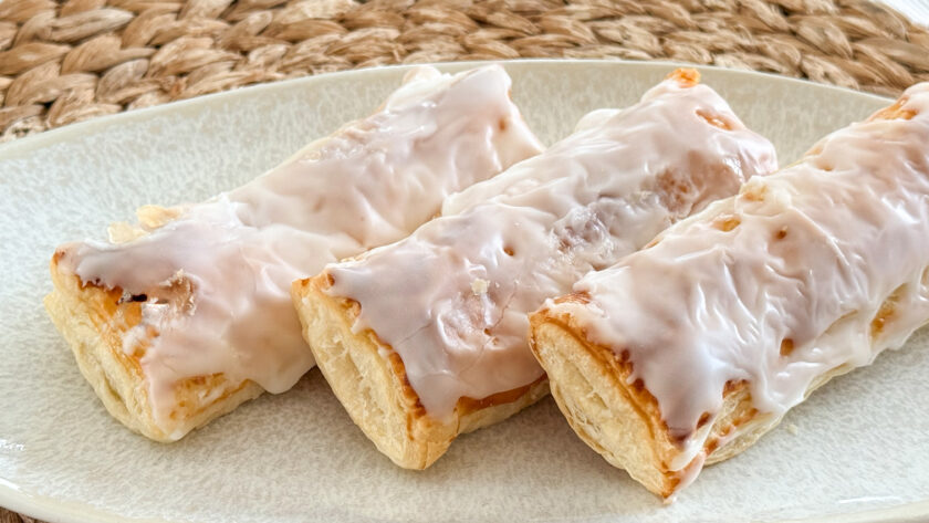 Guß anrühren, dazu Puderzucker mit Wasser oder Zitronensaft anrühren, bis er eine streichfähige Konsistenz hat. Die Teilchen mit dem Guß bepinseln.